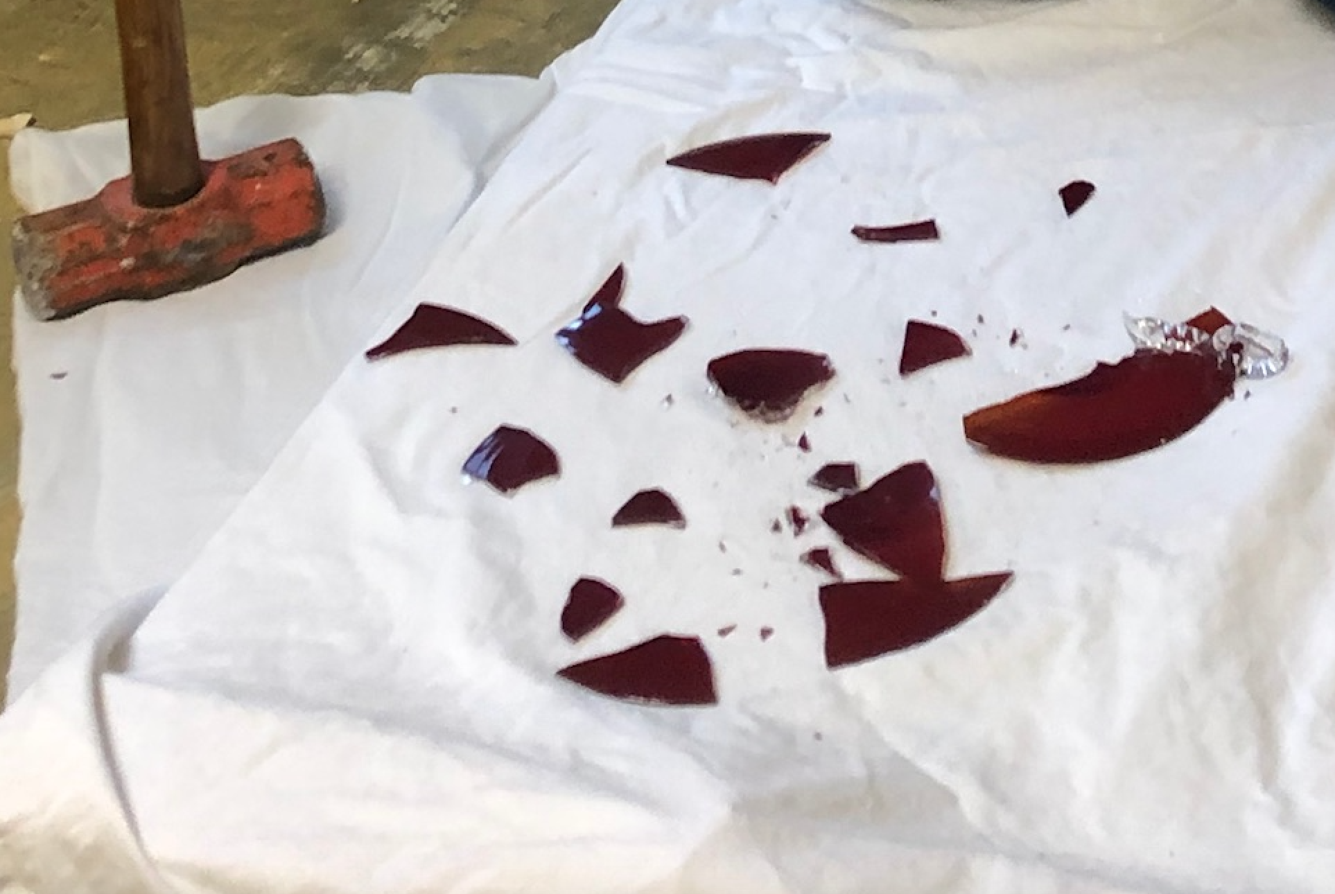 When a piece of art is broken in a museum setting it is heavily documented. From where it was broken, to how it was broken, and where all of the pieces end up. It is documented through photographs and written documentation. This aids the conservator in reassembling the piece. All of the pieces should be collected, no matter how small. The minuscule pieces can be perfect for chemical analysis and other processes. Even if the small pieces don’t end up being re assembled they should always be kept in a small baggy or container with the object/object’s information.